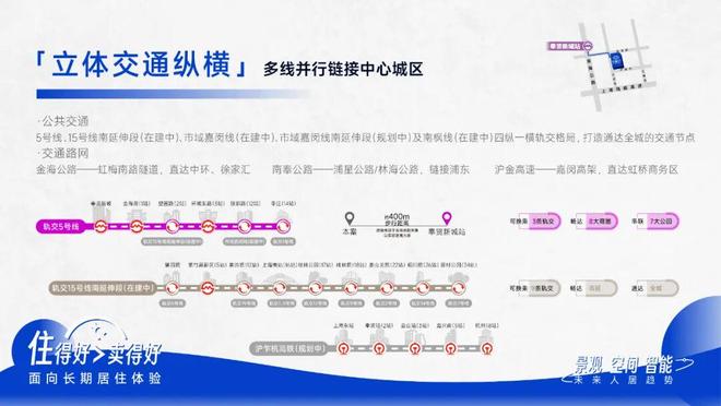 交通配套:紧邻地铁 5 号线奉贤新城站,直线 号线南延伸段(在建中)将与 5 号线交汇。周边有金海公路 - 虹梅南路隧道、南奉公路 - 浦星公路 / 林海公路等主干道。