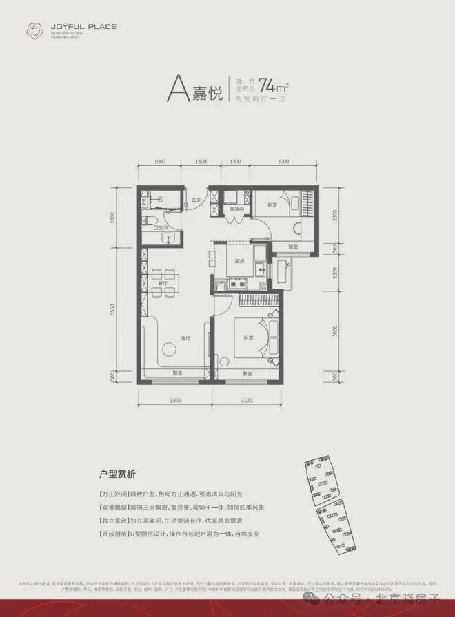 74㎡两居,是客厅+双卧朝南的经典格局,但值得点赞细节很多。首先南向2个大飘窗,两侧没有垛子让采光最大化。U型厨房,台面与储物空间很充足,其中有一段是虚墙,可以做成上下推拉窗,秒变吧台+西厨岛台。这款一直是北边的抢手款,总价300多万上车北部两居,非常有性价比。✅北京昌平嘉境里售楼处电话:【VIP贵宾专线㎡三居,南北通透+全明格局,客厅+主卧朝南,而且都带等宽大飘窗。餐客一体且等宽,公区视觉通透感很好。还拥有独立玄关+独立家政间,北侧两间卧室,还有黑科技加持,性价比很高。