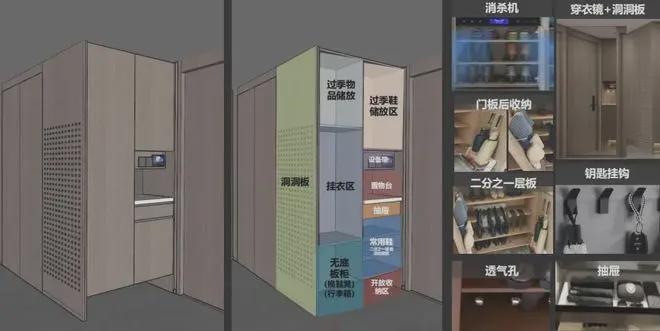 从玄关柜到餐边柜、家政柜,从主卧衣橱、卫浴柜、镜柜到整体橱柜、飘窗柜,整个空间融入了42个功能设计、23大亮点细节以及20大设备满配。