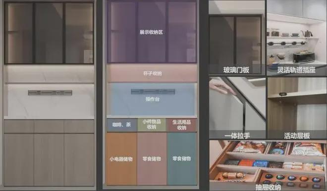例如,美的双开门的冰箱、方太抽油烟机和灶具、九牧多功能厨盆、抽拉式水龙头、万家乐燃气热水器,约120平米以上户型还有方太洗碗机、蒸烤一体机等等。