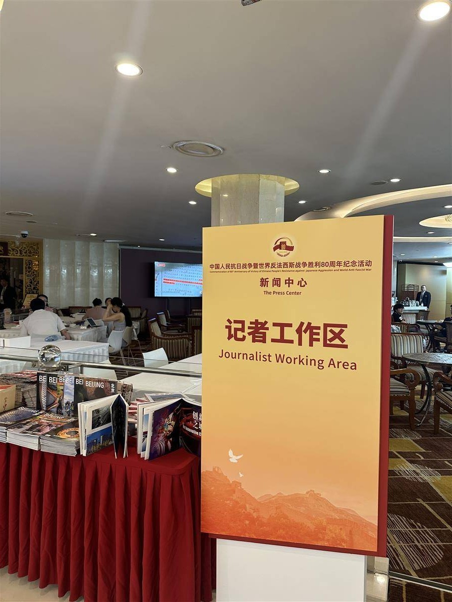 湖北日报讯(记者许旷)8月27日,北京梅地亚中心宾馆,中国人民抗日战争暨世界反法西斯战争胜利80周年纪念活动新闻中心开始对外接待服务。